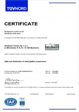 We are proud to present the certificate in which TÜV Nord Polska Sp. z o.o. certifies that Geldbach Polska Sp. z o.o. has implemented and applies quality assurance system in scope of: “Distribution and sales of steel flanges and fittings for piping application”. The compliance with standard PN-EN ISO 9001 : 2009 has been confirmed by the audit.